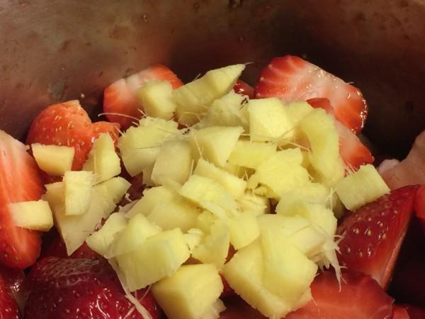 Prima di tutto bisogna lavare le fragole e tagliarle, poi spelare e tagliare a cubetti piccoli lo zenzero e aggiungere lo zucchero e la pectina.